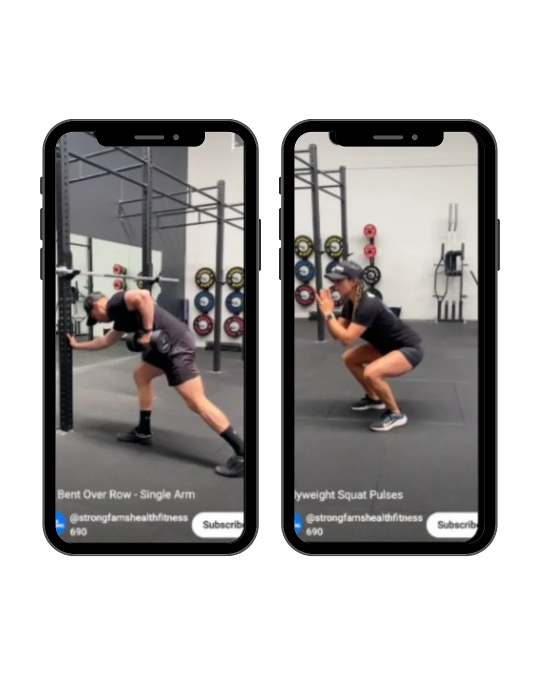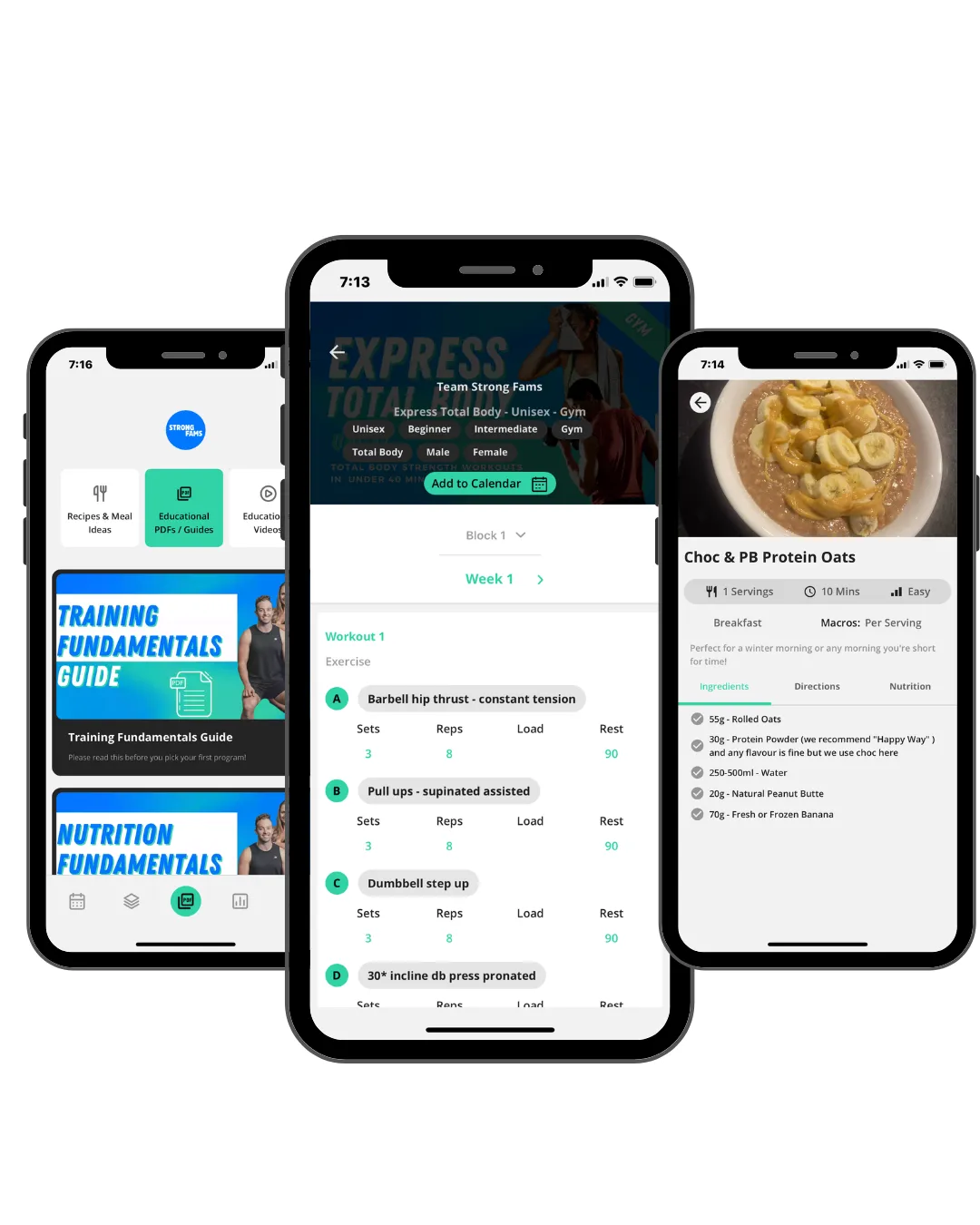 Access to our personalised Strong Fams app - custom dashboard, view & track workouts, progress, recipe library, educational videos & guides + so much more